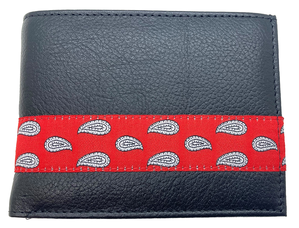 Ledergeldbörse12x9x2cm, mit Textilband Paisley.