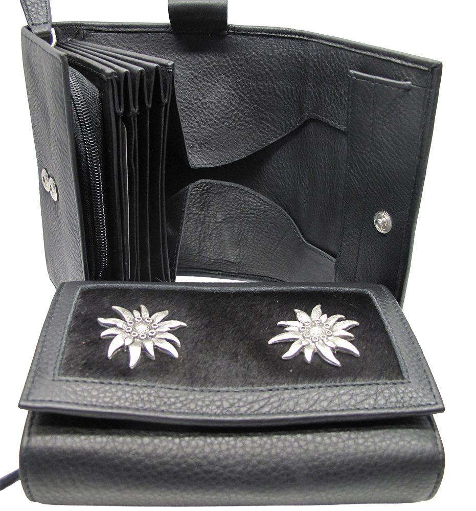 Ledergeldbörse mit Felleinsatz, 15x10x 5cm im Fell mit Altsilberbeschlag. Fell ist ein Naturprodukt, daher kann es in der Farbe heller oder dunkler sein.