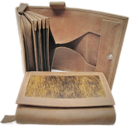 Ledergeldbörse mit Felleinsatz, 15x10x 5cm.