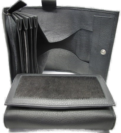 Ledergeldbörse mit Felleinsatz, 15x10x 5cm.