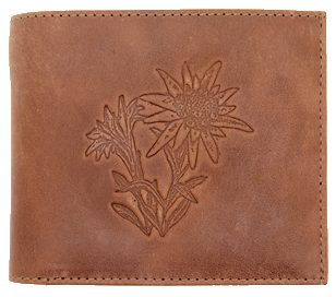 Ledergeldbörse mit Sujet-Prägung 12x9x2cm.