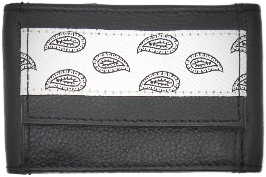 Ledergeldbörse 9x6x2cm, mit Paisleystoffband.