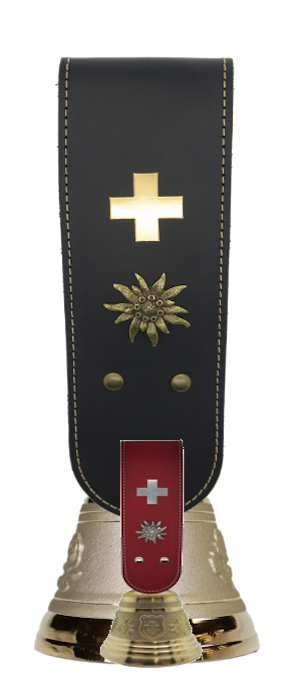 Swiss Bronze Glocke, Umnäht mit CH-Prägung und Edelweiss.