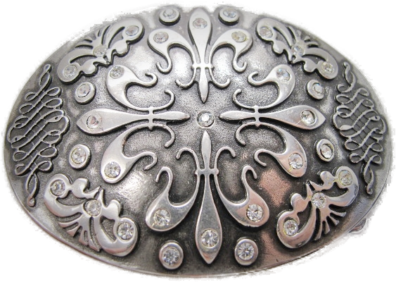 Gürtelschnalle in Altsilber und Strass weiss, dazu machen wir gerne einen Ledergürtel aus unserem Sortiment daran.