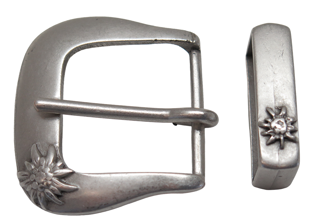 Gürtelschnalle in Altsilber, inkl. Metallschlaufe, dazu machen wir gerne einen Ledergürtel aus unserem Sortiment daran.