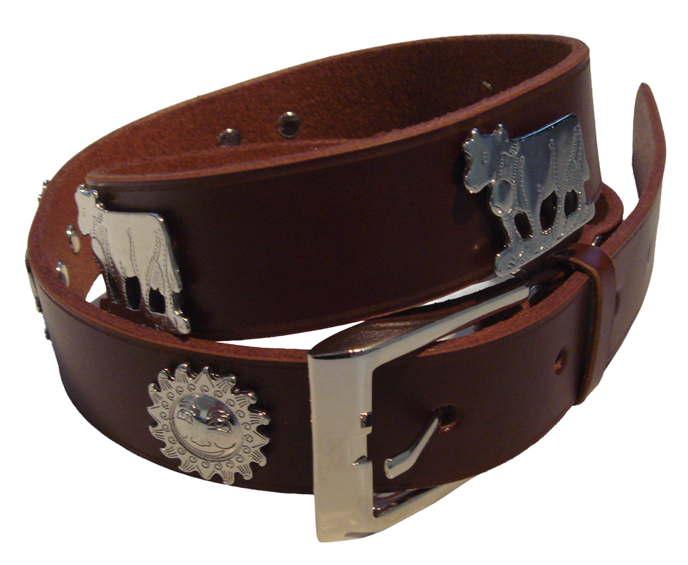 Ledergürtel mit Niet-Beschlägen: Neusilber.