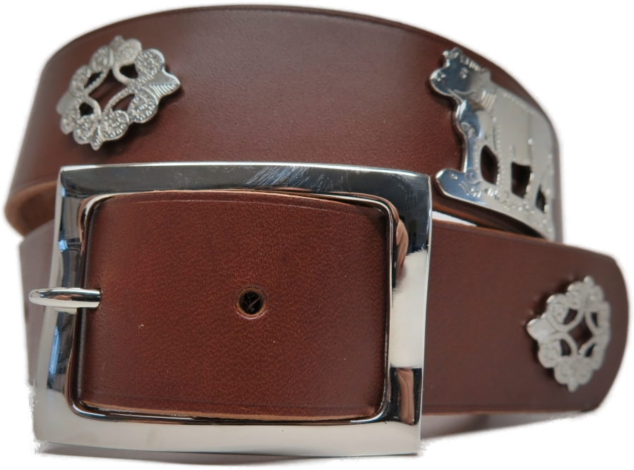 Ledergürtel mit Niet-Beschlägen: Neusilber.