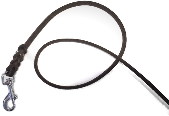 Sehr geschmeidige Schweisslederleine, hinten offen, mit eingebundenem Karabiner.