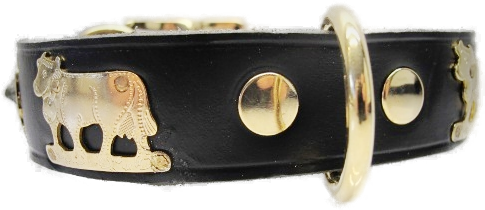 Lederhalsband mit Nägeli-Messingbeschlag.