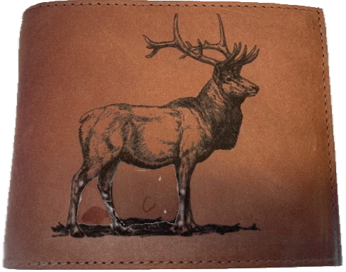 Ledergeldbörse mit Laser-Sujet 12x9x2cm.