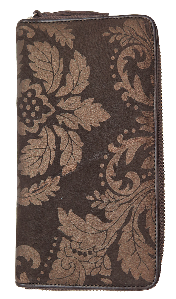 Ledergeldbörse, 19x11x3cm mit Blumendruck.