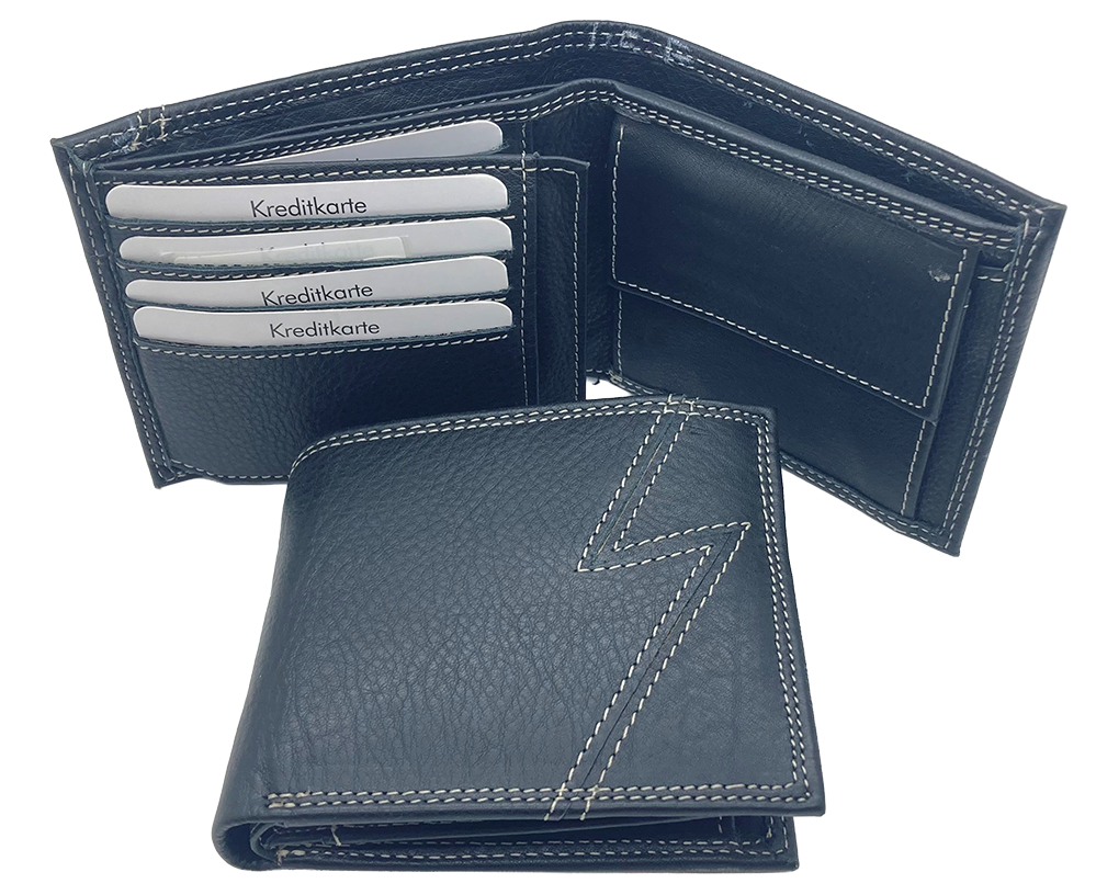 Ledergeldbörse, zweifarbig, 12x10x3cm, Schwarz/Schwarz