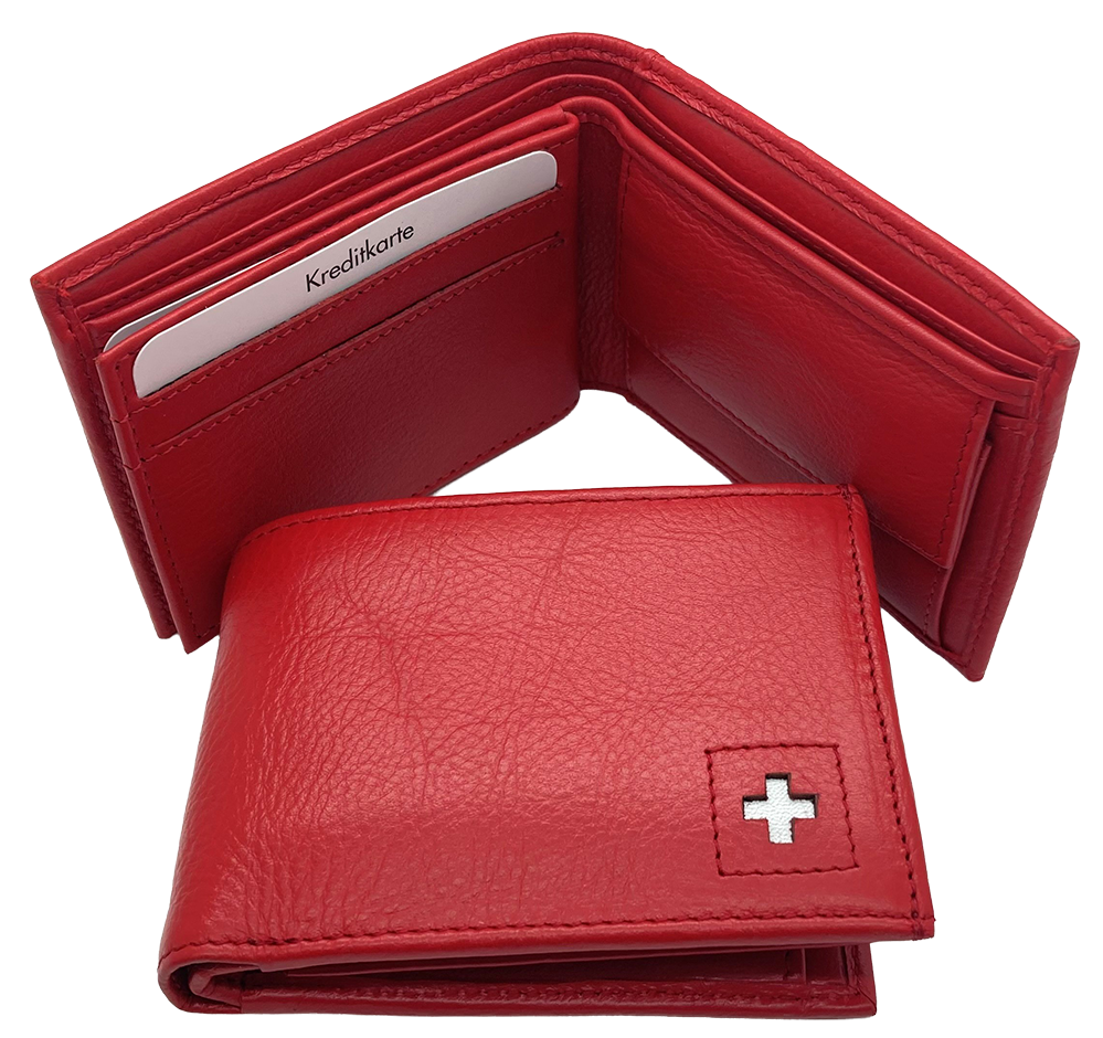 Ledergeldbörse 11x7x2cm, mit eingelassenem Kreuz.