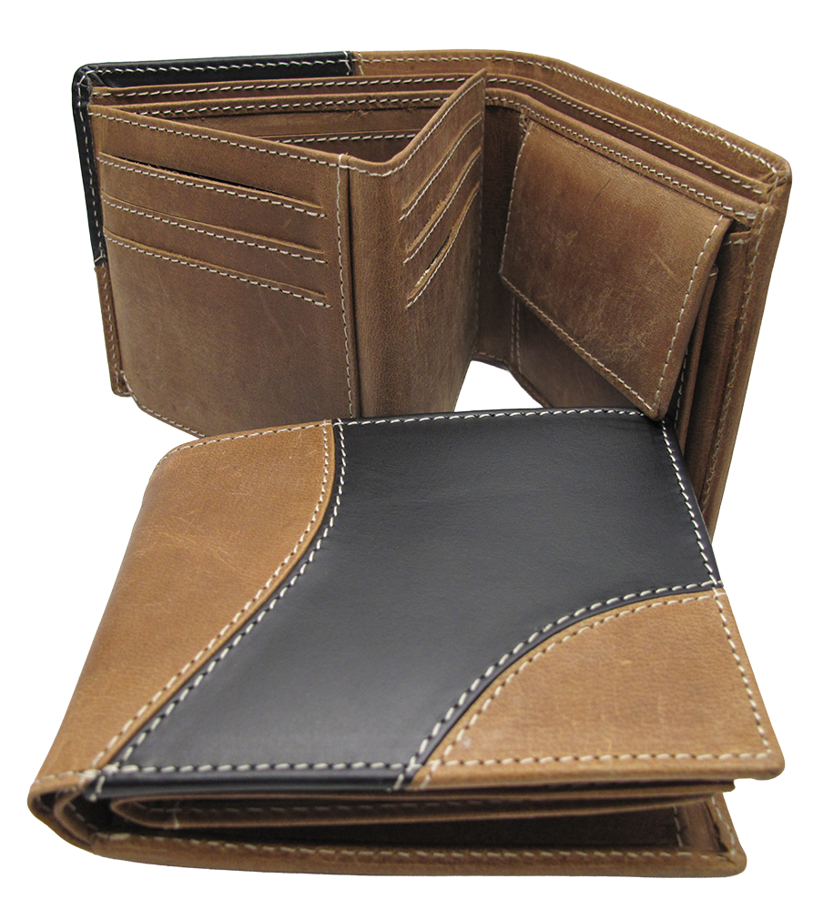 Ledergeldbörse, zweifarbig, 12x10x3cm.