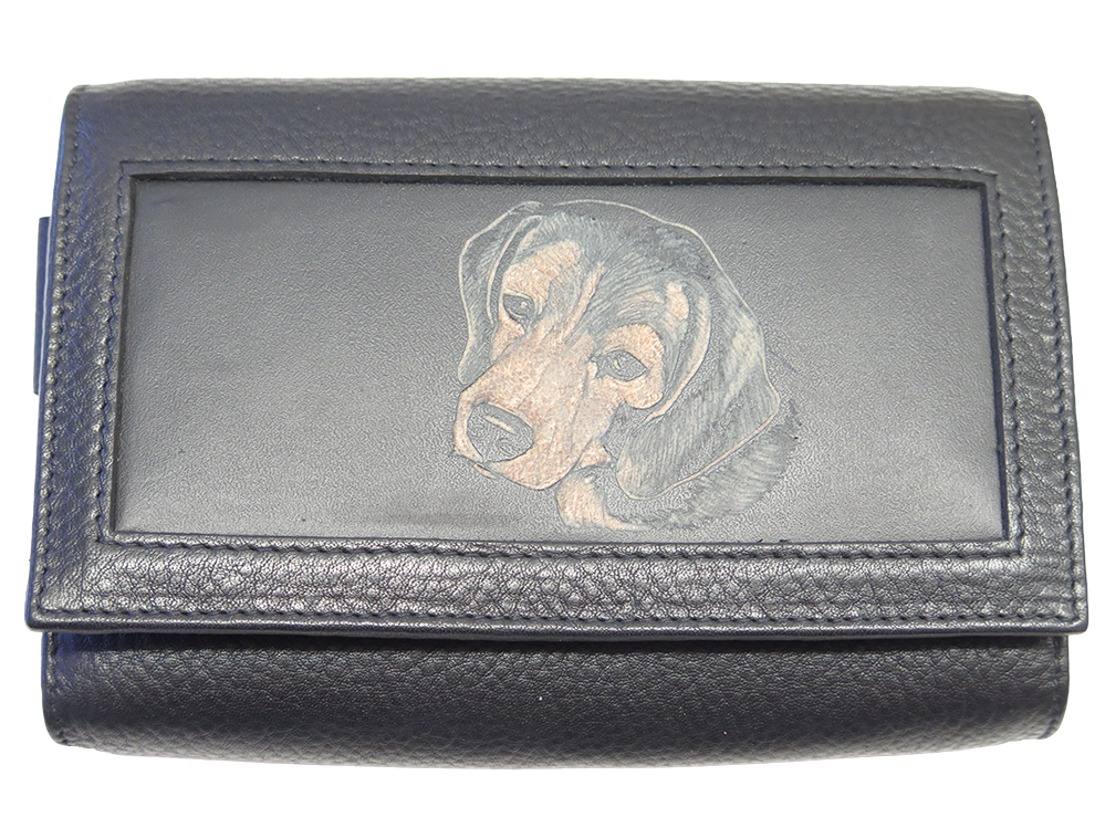 Ledergeldbörse 10x12x3cm, mit Schnitzfenster aus Zeugleder.