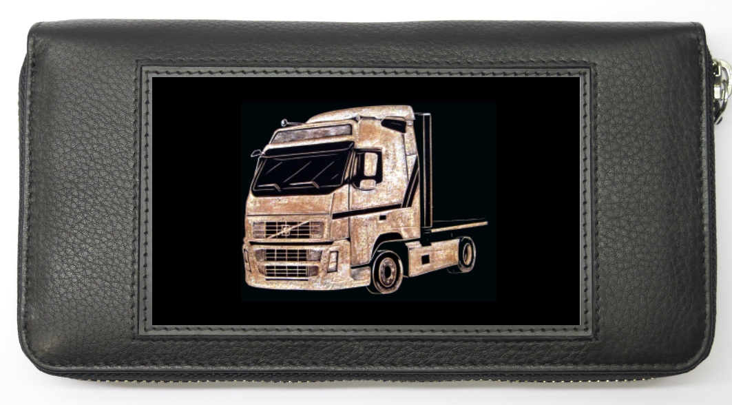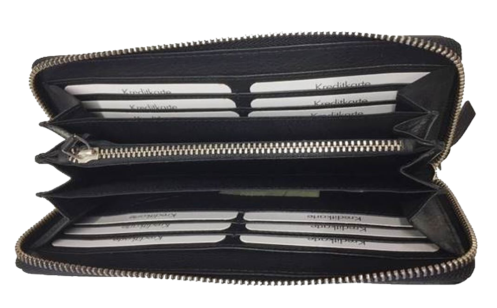 Ledergeldbörse 10x19x2cm, mit Schnitzfenster aus Zeugleder.