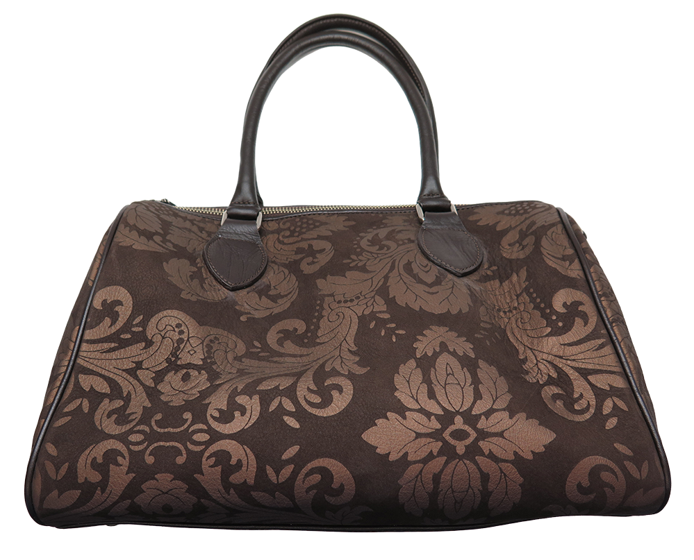Ledertasche, 32x25x15cm mit Blumendruck.