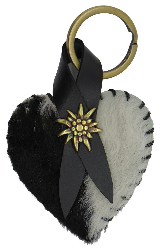 Schlüsselanhänger mit Edelweiss 10x1cm aus Fell. Fell ist ein Naturprodukt, daher kann es in der Farbe heller oder dunkler sein.
