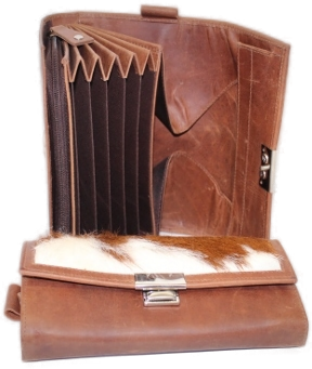Ledergeldbörse mit Felleinsatz, 20x10x 5cm.
