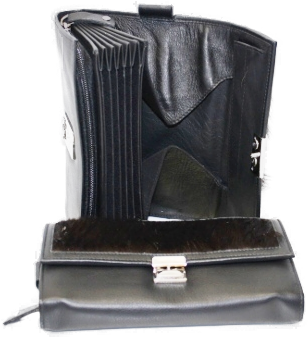 Ledergeldbörse mit Felleinsatz, 20x10x 5cm.