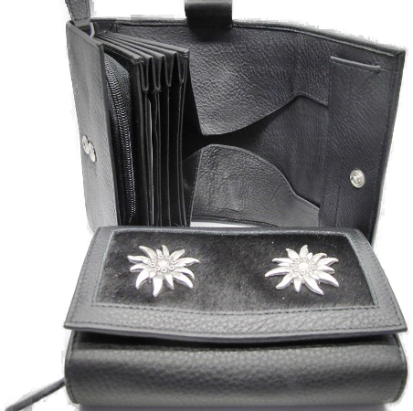 Ledergeldbörse mit Felleinsatz, 15x10x 5cm im Fell mit Altsilberbeschlag.