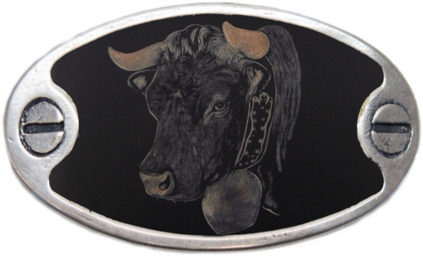 Gürtelschnalle mit Ledereinsatz, Sujet-Handgeschnitzt.