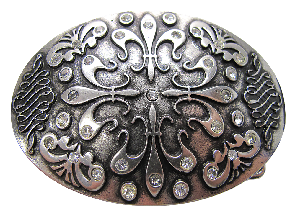 Gürtelschnalle in Altsilber mit Strass weiss, dazu machen wir gerne einen Ledergürtel aus unserem Sortiment daran.