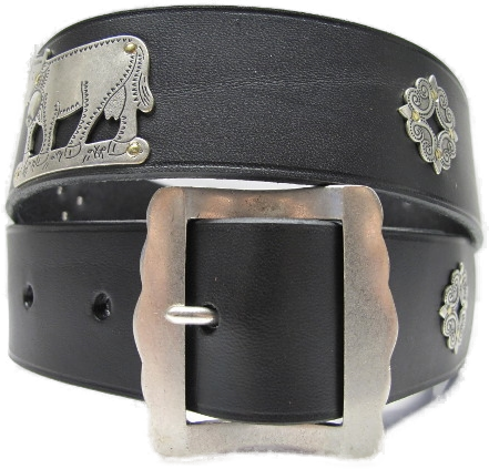 Ledergürtel mit Nägeli-Beschlägen: Altsilber.