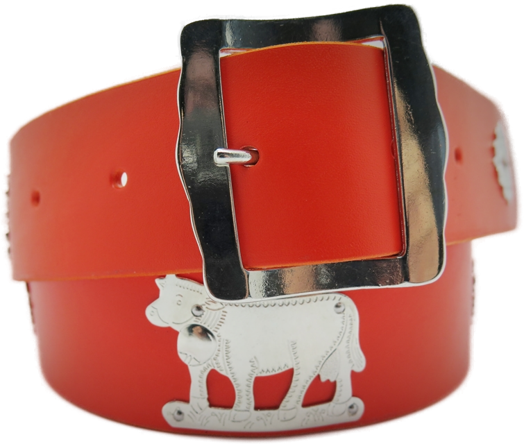 Ledergürtel mit Nägeli-Beschlägen: Neusilber.