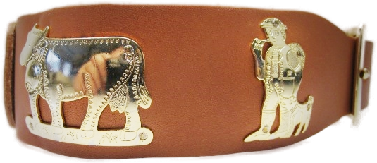 Lederhalsband mit Nägeli-Messingbeschlag: Breite-Länge 3.8x50, 4,3x56, 4.6x63, 5.0x70, 6.0x 80cm