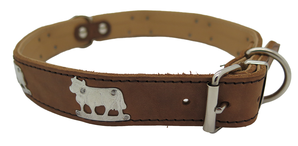 Lederhalsband, Umnäht mit Futter, Beschlag Nägeli-Kuh.