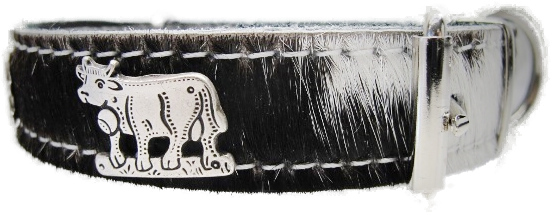 Fell auf Leder genähtes Halsband mit Altsilber-Nietbeschlag, Breite: Je nach Länge 1.8x40, 2.0x45, 2.2x50cm, 2.5x56, 2.7x63, 3.0x70, 3.6x80cm