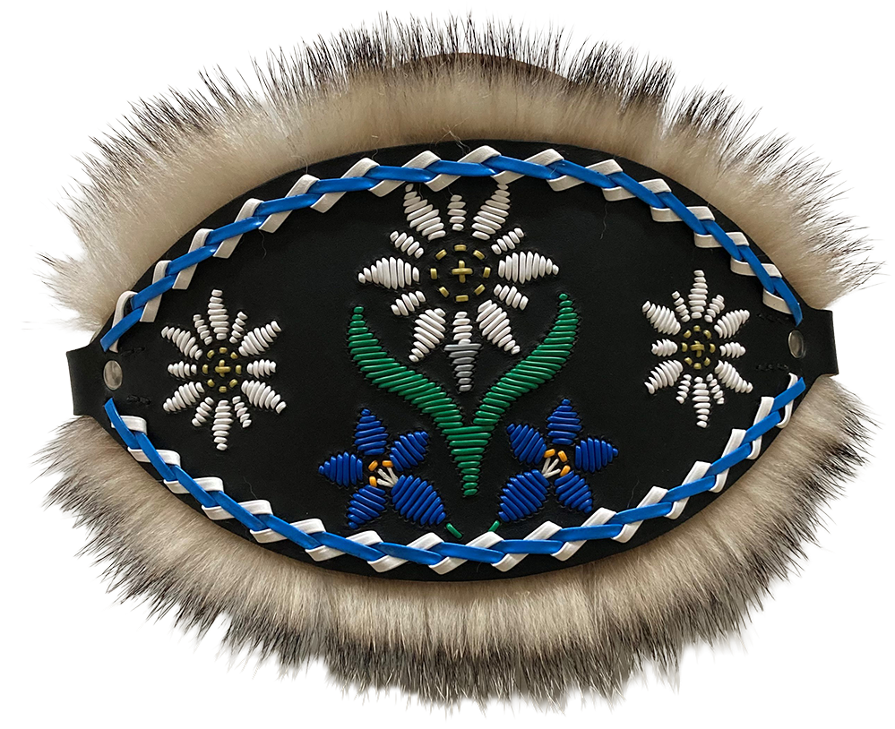 Nasenband 15cm hoch, mit Stickerei, Dachshaar und Kettenstich.