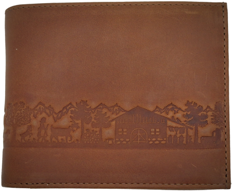 Ledergeldbörse mit Sujet-Prägung 12x9x2cm.