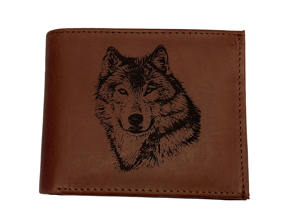 Ledergeldbörse mit Laser-Sujet 12x9x2cm.