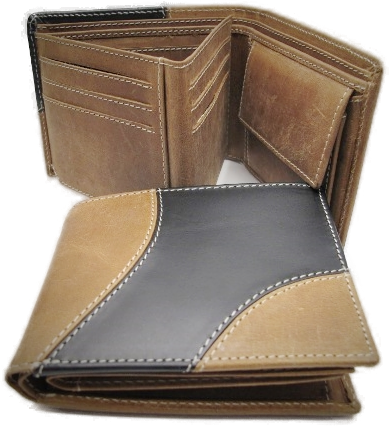 Ledergeldbörse, zweifarbig, 12x10x3cm.