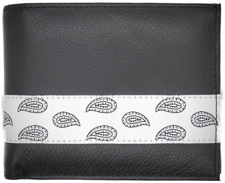 Ledergeldbörse: 11x9x2cm, mit Paisleystoffband.