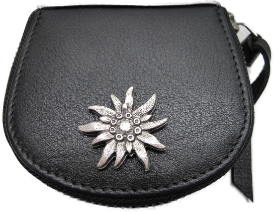 Ledergeldbörse 7x8x2cm, mit Edelweissbeschlag.