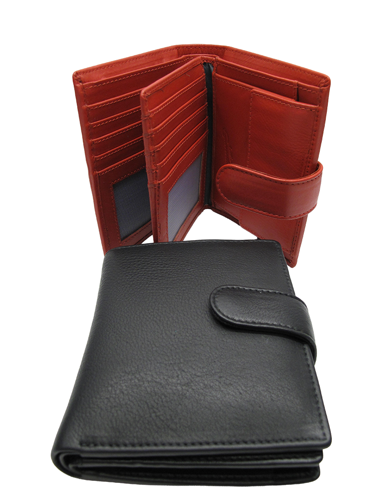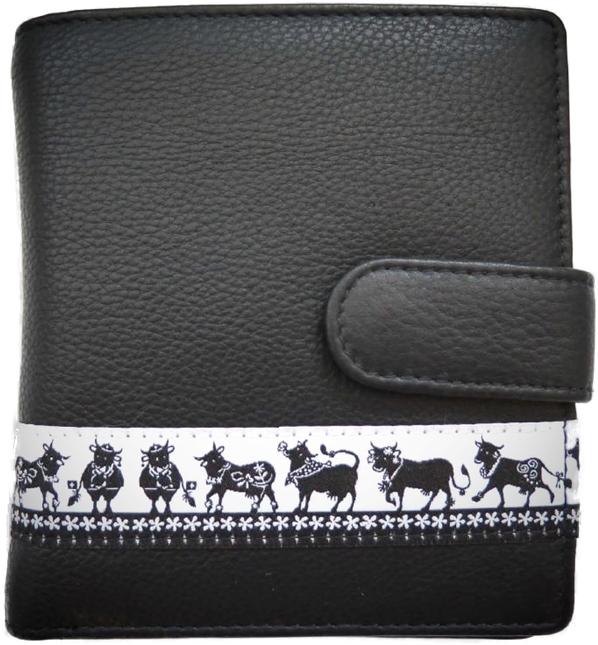 Ledergeldbörse, 11x13x3cm, mit Kuhstoffband.
