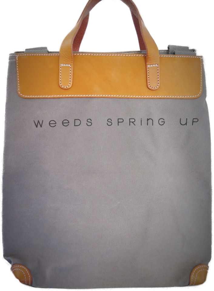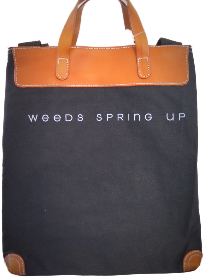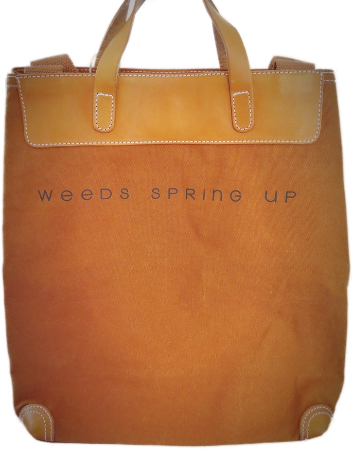 Seitentasche aus Stoff mit Lederabschluss, B36 H43 T11cm, mit Hand-Schulterriemen.