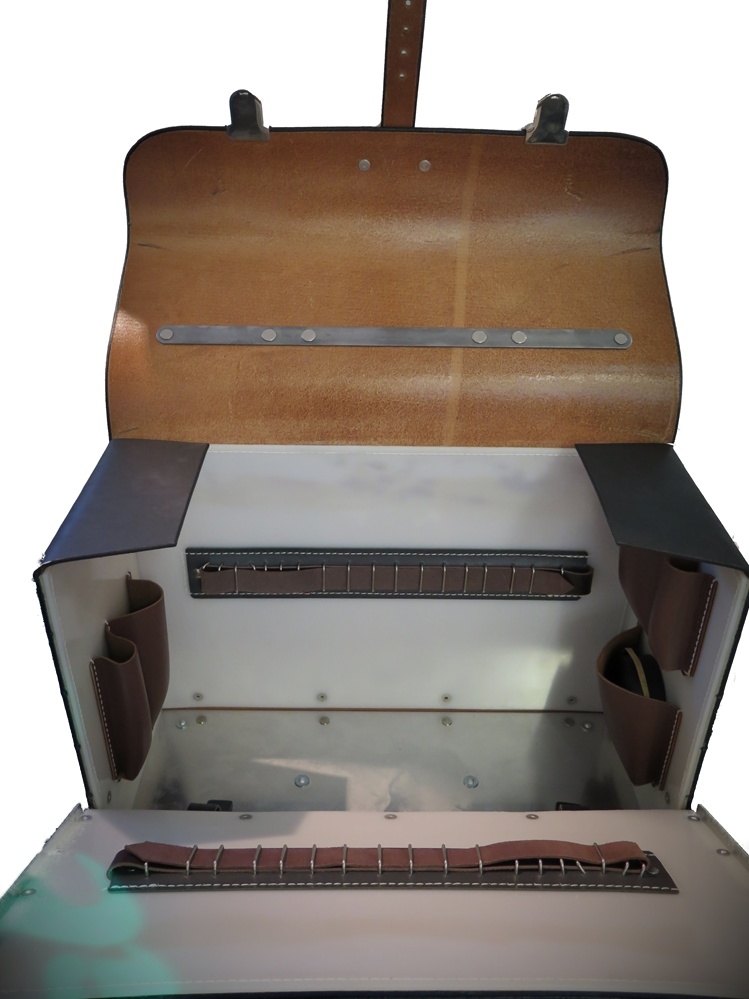 Aus Zeugleder mit Vortasche, Breite cm:50 Höhe cm:36 Tiefe cm:22