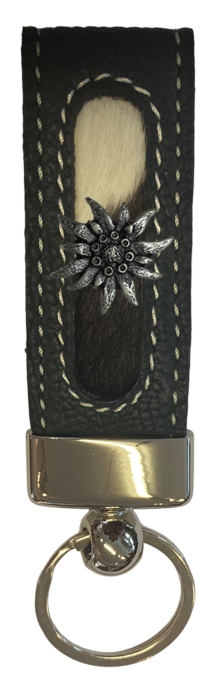 Schlüsselanhänger 12x3cm mit Metalledelweiss. Fell ist ein Naturprodukt, daher kann es in der Farbe heller oder dunkler sein.