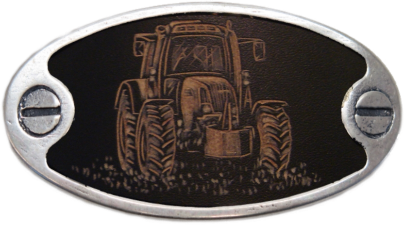 Gürtelschnalle mit Ledereinsatz, Sujet-Handgeschnitzt.