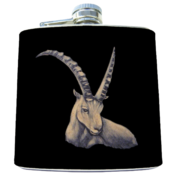 Flachmann Steinbock halb geschnitzt